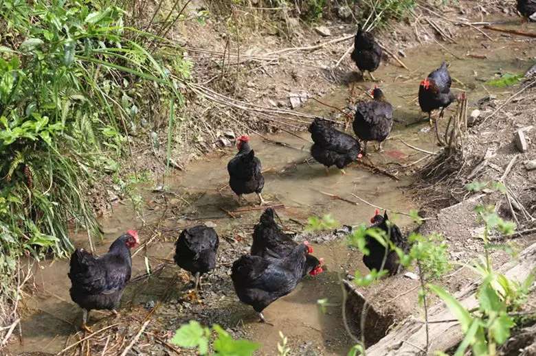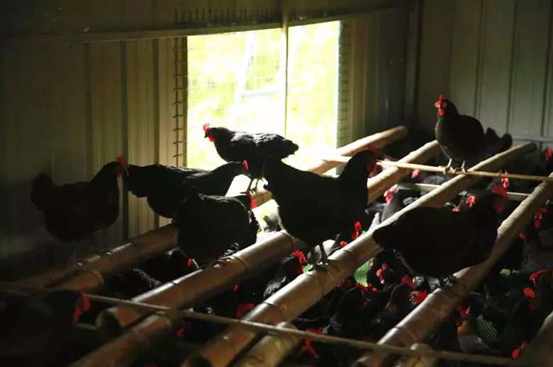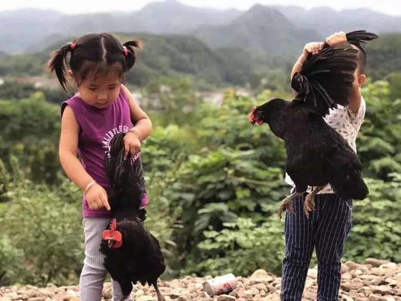 雞冠紅艷艷,羽毛黑黝黝。