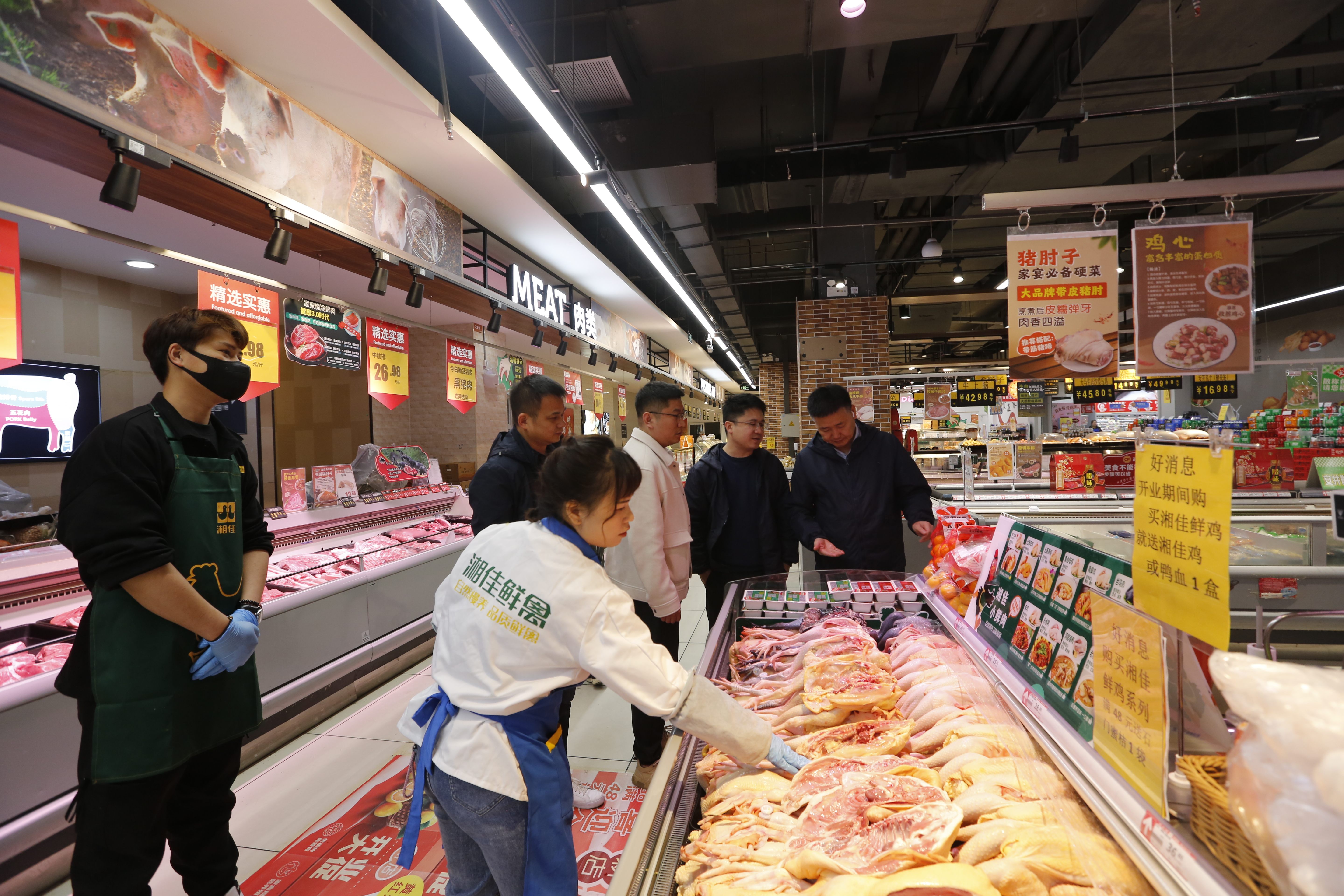 在家家悅超市,喻自文和家家悅集團副總裁李新圍繞肉類保鮮技術、內蒙市場行情和飲食習慣等情況展開了深度交流。李新表示,內蒙古市民一直以來偏向于購買凍禽和凍肉,隨著家家悅超市大力推廣,目前內蒙人對鮮禽的接受程度正逐步提高,湘佳鮮禽在內蒙市場大有可為。